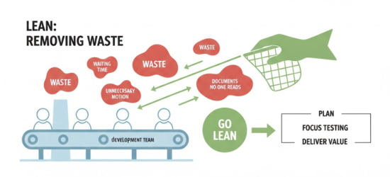 First, let’s look at Lean. Lean principles focus on removing waste from a process. In software testing, waste often means time spent waiting for test environments, writing documents no one reads, or repeating the same manual tests every day. These non-value-added steps slow down the entire development team. To “go Lean,” we reduce these wasted steps. We simplify our plans and focus only on the testing that gives the customer the most value.